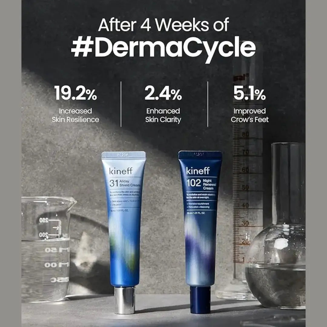 El programa Kineff Dermacycle Program es un set facial de día y noche diseñado para brindar hidratación intensa, protección diaria y renovación nocturna en una rutina simple. Incluye: